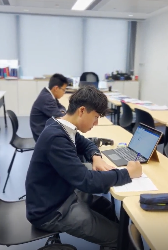 In form time, Sung Hei settles in, opens his laptop, and reviews his notes. Around him, the room hums with quiet concentration—students planning, organising, and thinking ahead.