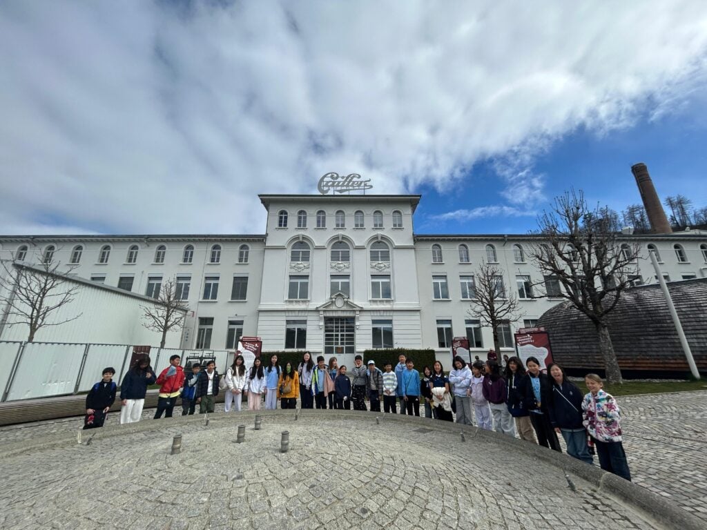- A delicious visit to the Cailler chocolate factory, where students discovered the art of Swiss chocolate-making and — of course — enjoyed some well-earned tasting.