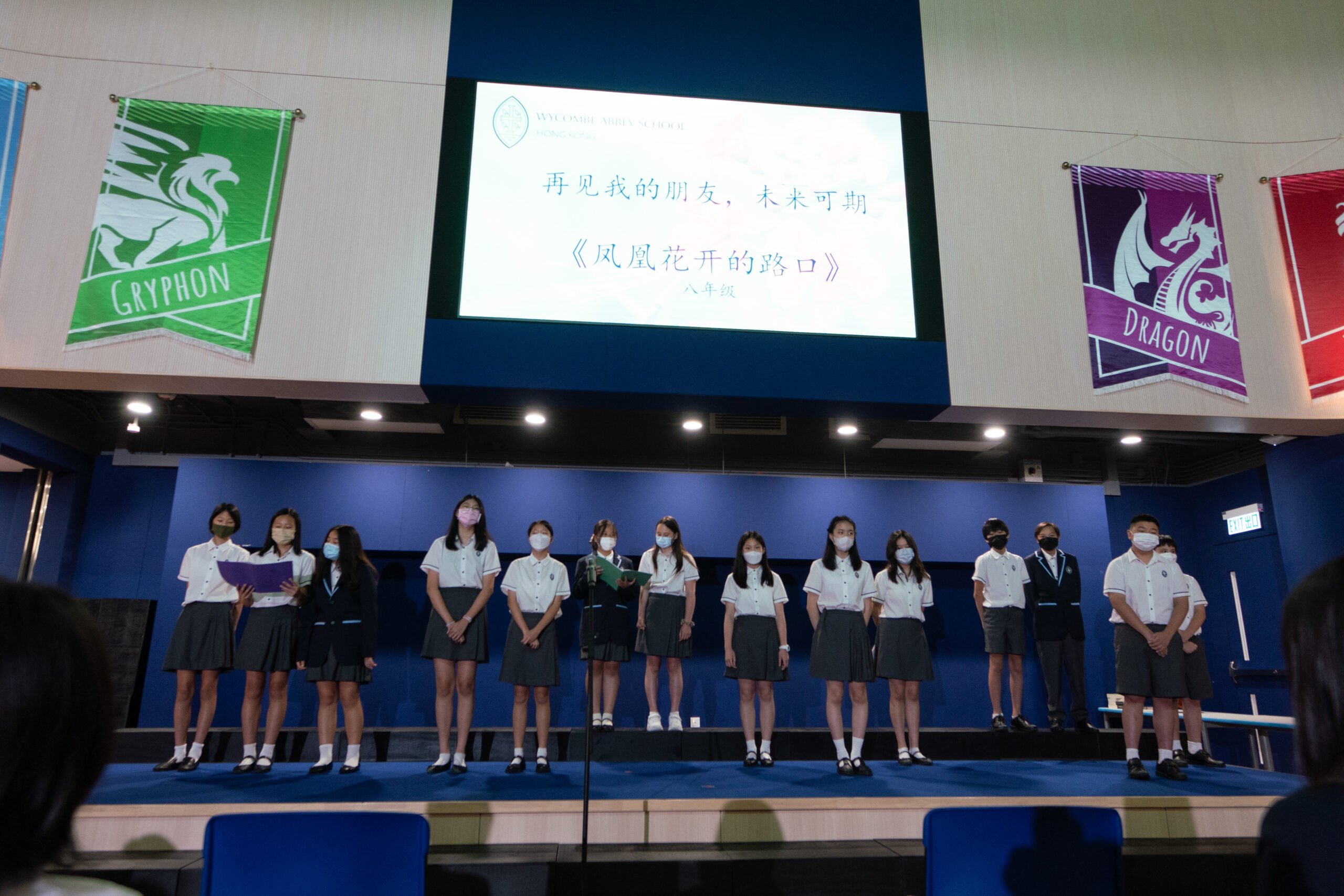 Onto the Year 8 performance, and once again it was the first and last time for them to sing together “再见我的朋友,未来可期” (So long for now my friends). Despite the lack of practice, it was important that everyone took part. WASHK’s stage is not built for only those who are ‘show ready’, but for every student. In Mr. Tuckett’s words, “the objective of this song was not to impress the adults, your parents already love you no matter what. This performance was more to let you show yourself and everyone that you can do it, and with confidence as well! And for that, we applaud you.”